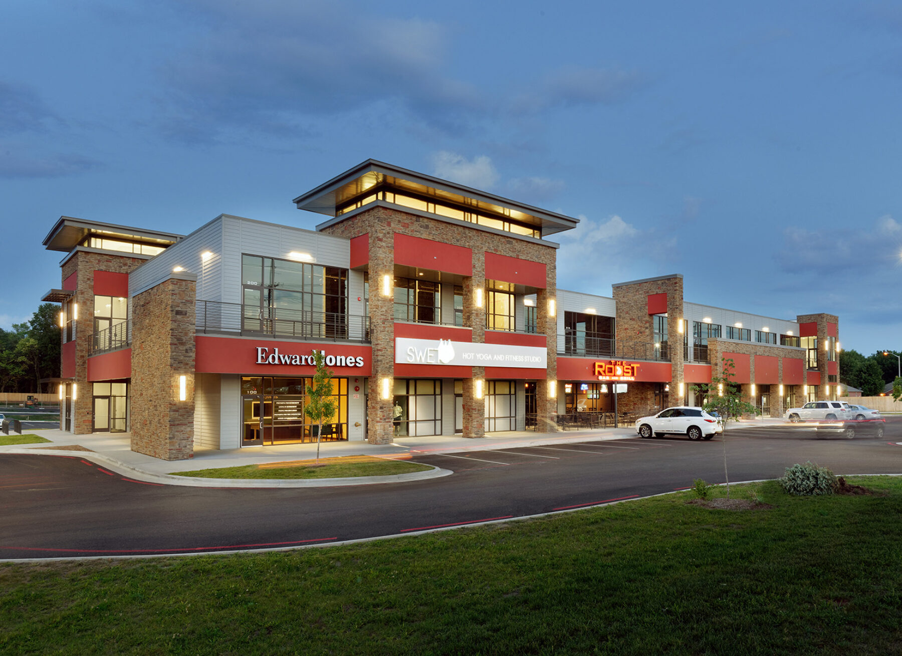 The two-story, two-building development features ten retail storefronts, ten offices, and seven restaurants. George Lopez Construction Group served as a Springfield-based general contracting company.